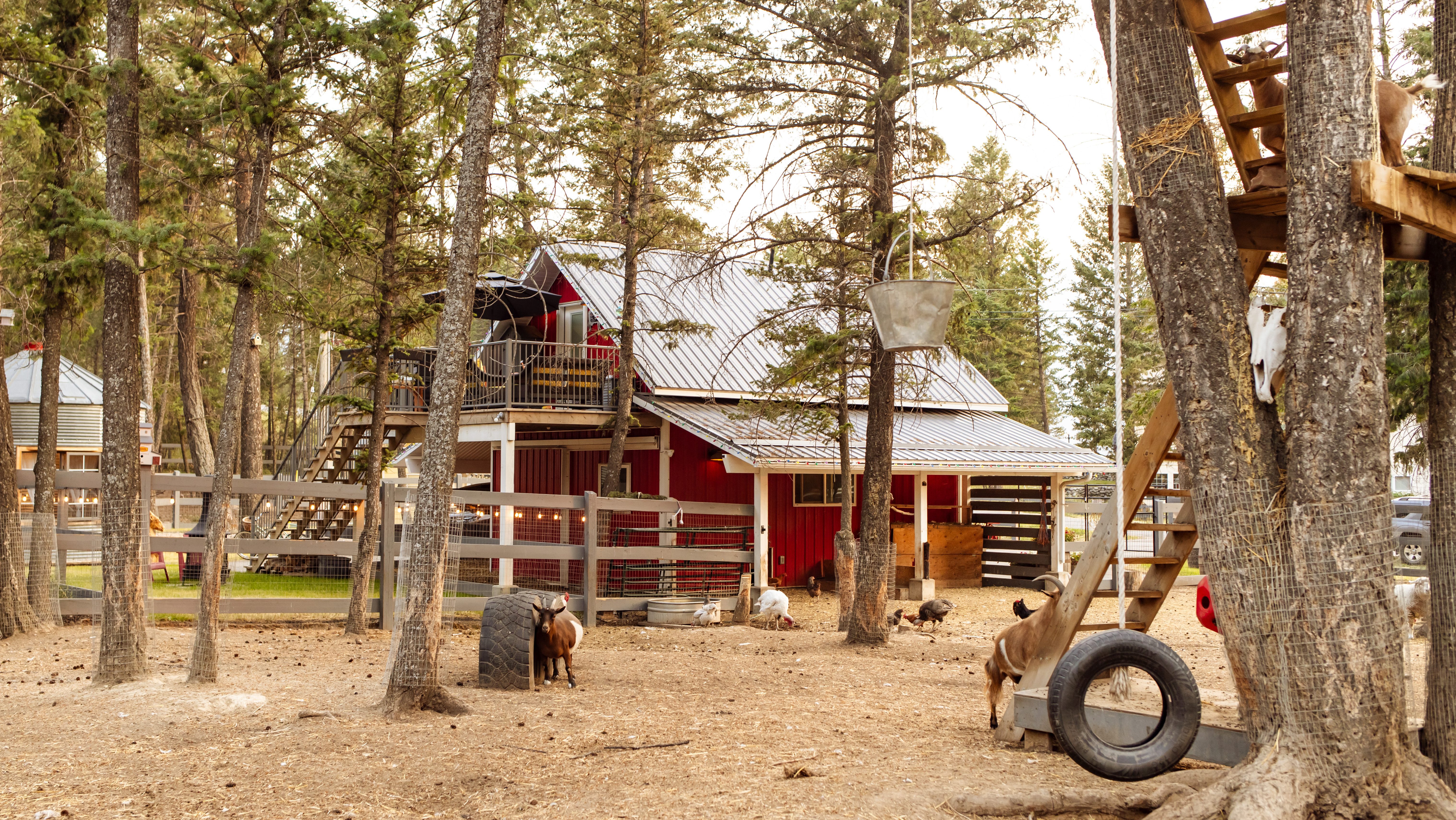 Here visitors from around the world enjoy the privacy of their own barn loft apartment, complete with a romantic hot tub in a converted grainery hopper, a gated driveway, private green space with two fire pit options under the stars and endless entertainment with the barnyard antics below.