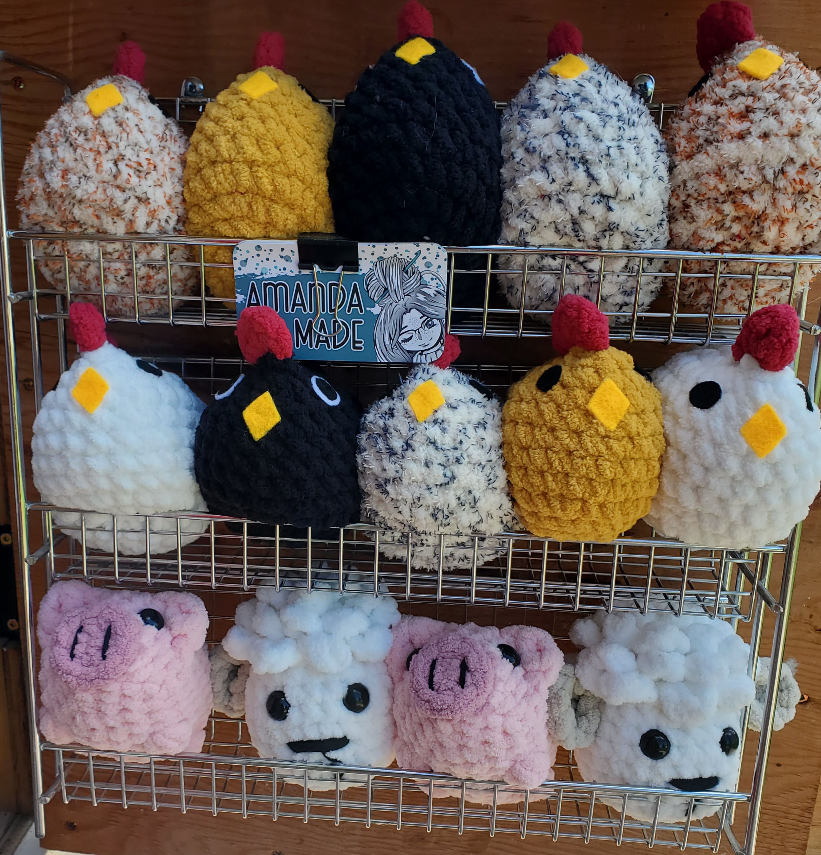Take AmandaMade, for example, a local crocheting guru with custom patterns we couldn’t wait to see in person! Check out her mini farm animals, available at our stand, or visit her online platforms for other incredible designs!